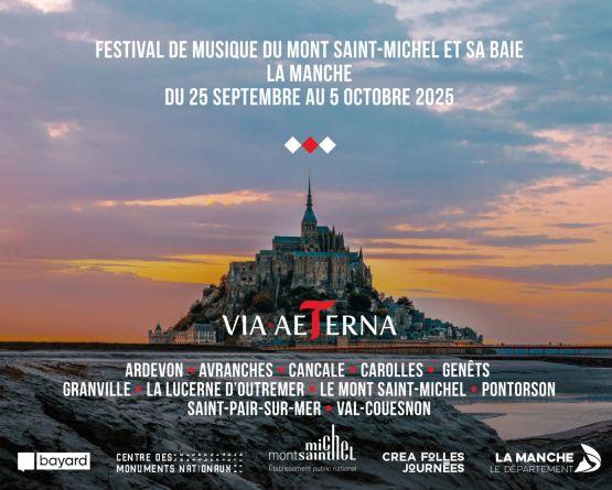 Le Festival Via Aeterna a été créé en 2017 par le groupe Bayard (La Croix), soutenu par le Centre des Monuments Nationaux, le Département de la Manche et de l’Établissement Public du Mont-Saint-Michel (EPIC), ce qui explique son ancrage dans le territoire ; et un quatrième partenaire, le CREA (La Folle Journée) qui organise chaque année plus de 1200 concerts en France et dans le monde et dont le directeur artistique mondialement connu, René Martin, supervise Via Aeterna.